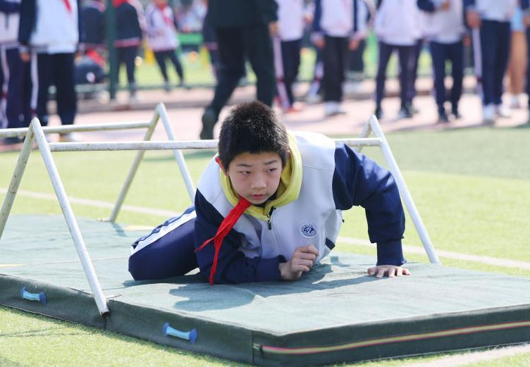 为了保障学生体育活动的时间与质量,天津市南开区水上小学在学校大课间时段,全校开展了以攀、爬、跳、跃等为主要内容的国防特色体育活动,丰富学校的体育活动的形式,提高学生体育活动的质量