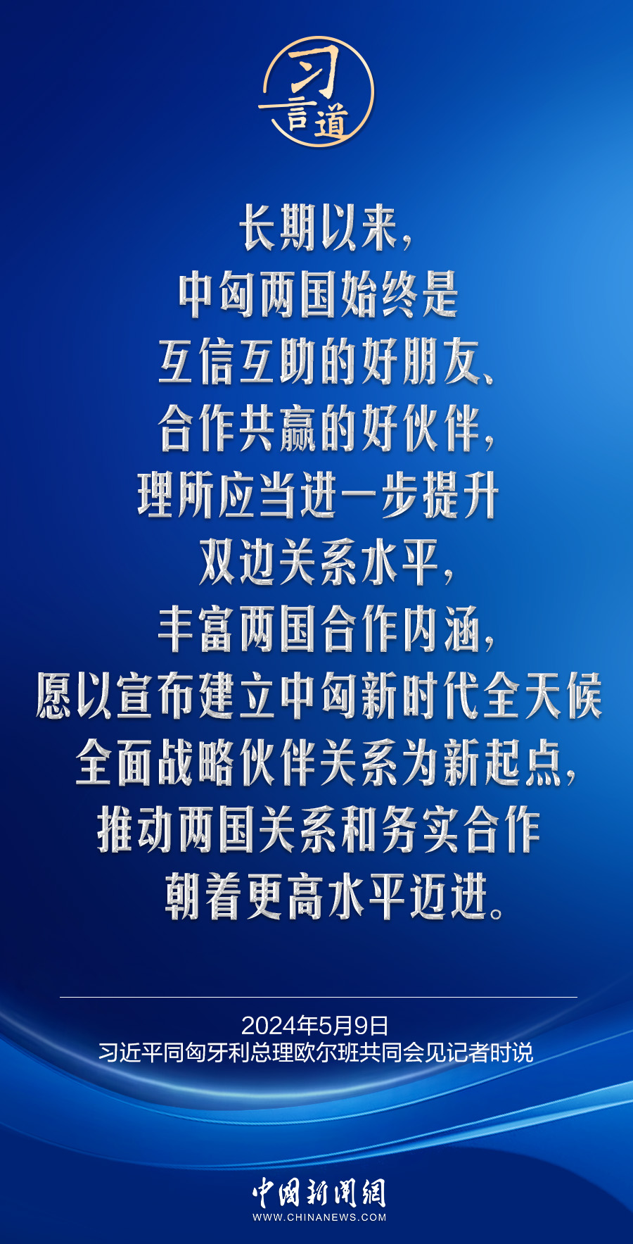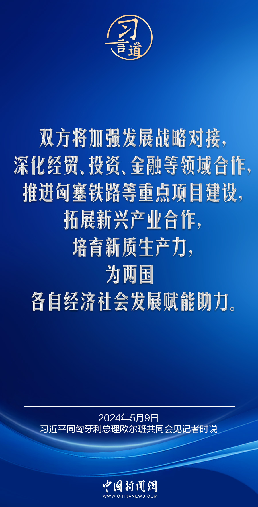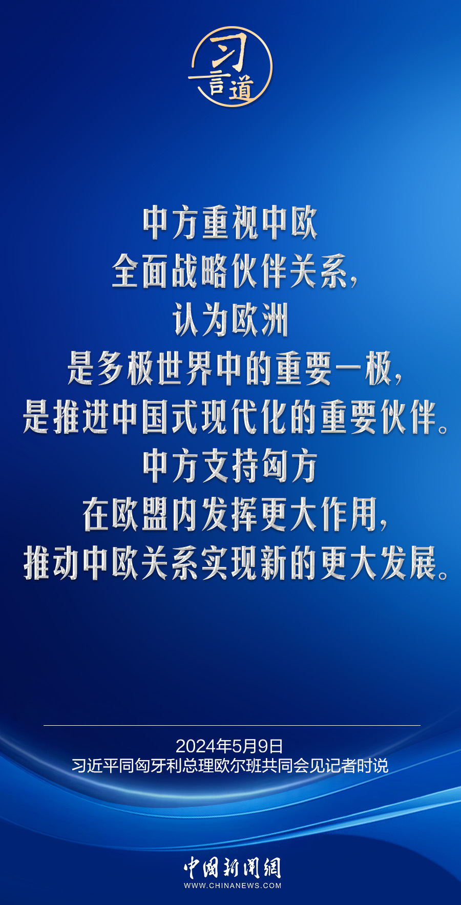 当地时间5月9日下午,国家主席习近平在布达佩斯总理府同匈牙利总理欧尔班会谈后共同会见记者。习近平指出——