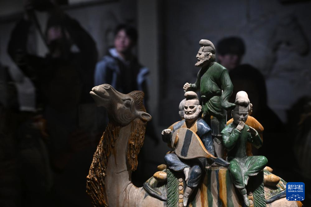 这是中国国家博物馆“古代中国”基本陈列展出的唐代三彩釉陶骆驼载乐俑(12月3日摄)。