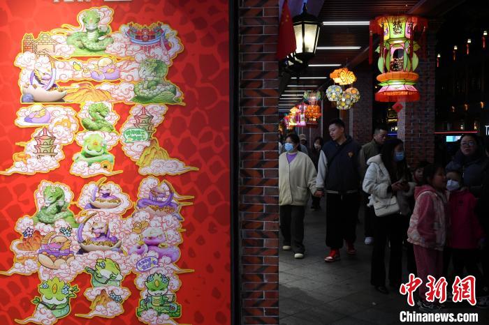 2月10日晚,市民和游客在福建泉州古城区游览、赏灯。当晚,“泉州非遗贺新春——2025年元宵泉州灯会”正式亮灯,在鲤城、丰泽、洛江、泉州台商投资区等地,共设置19个展区,展出超2000盏花灯,充分展示“宋元中国·海丝泉州”文化底蕴,让广大市民游客感受“灯在城中,城在灯中”的喜庆氛围。中新社记者吕明 摄