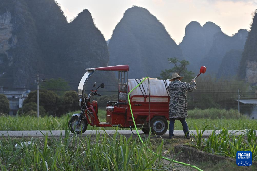 4月21日,广西都安瑶族自治县地苏镇上节村村民在给玉米浇水。