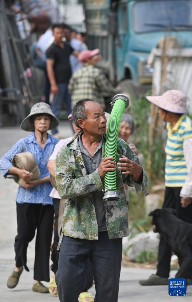 4月21日,广西马山县金钗镇龙印村村民在搬运水管,准备将当地政府送来的水引进水柜。