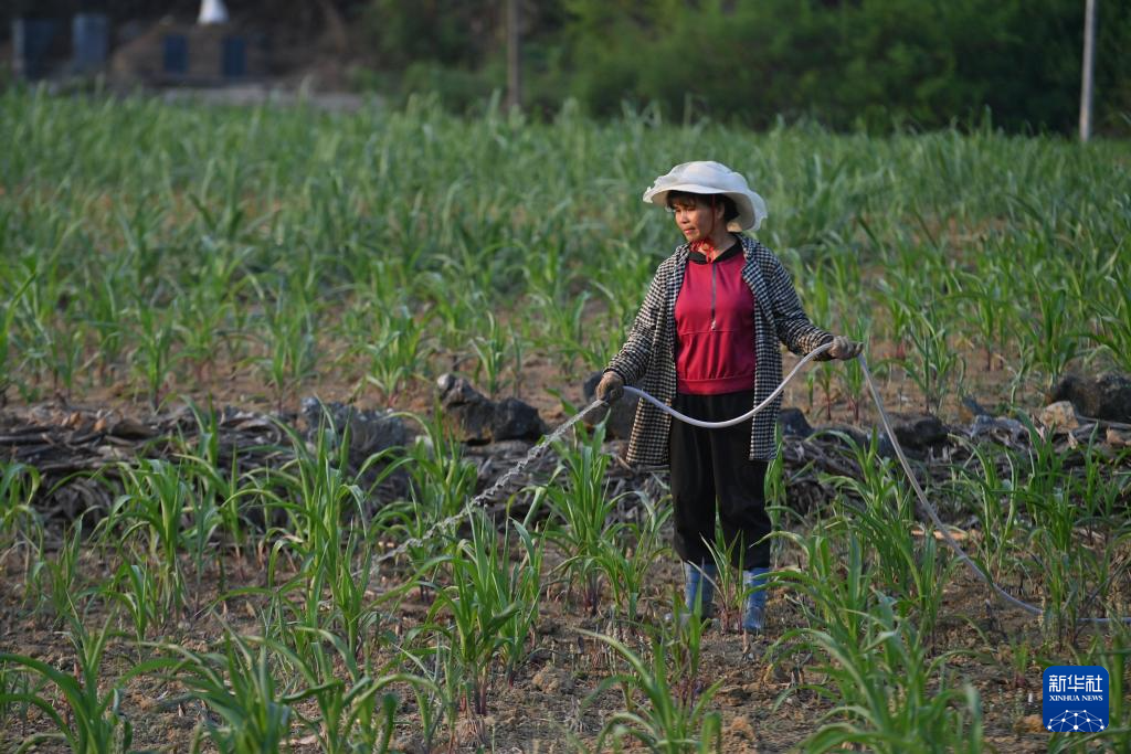 4月21日,广西都安瑶族自治县地苏镇镇和村村民在给玉米浇水。