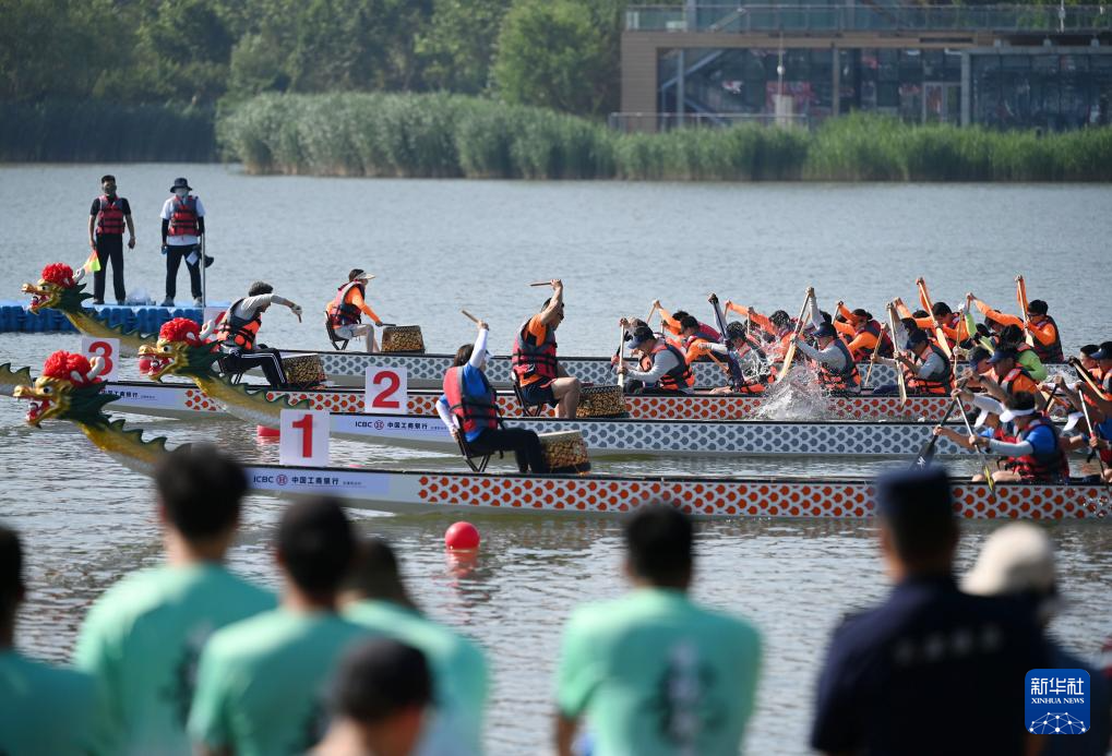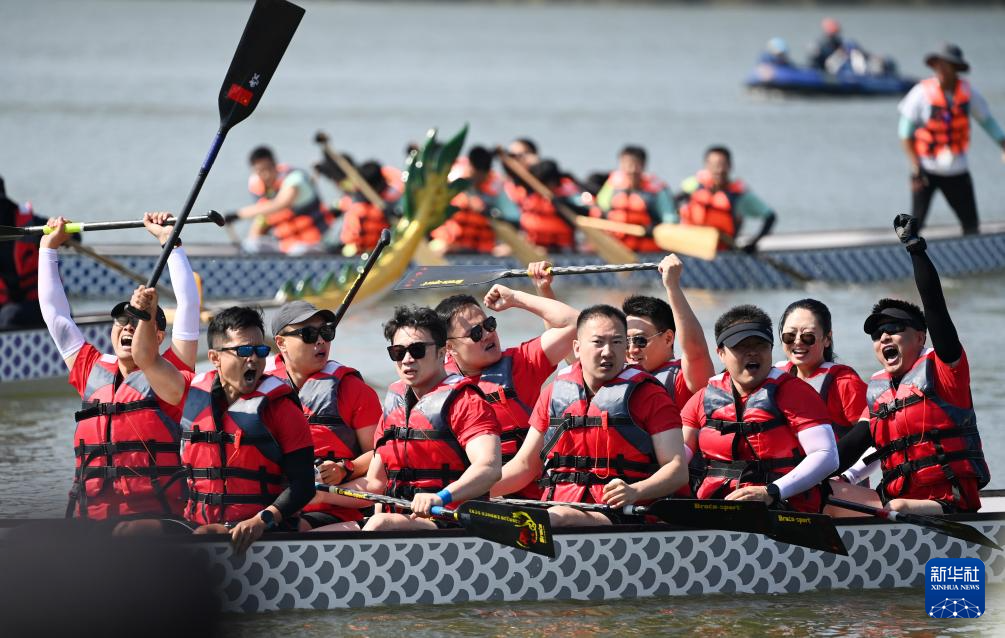 当日,2025年天津港保税区龙舟大赛在天津空港经济区西湖举行,辖区内的20支企事业单位代表队同台竞技,奋楫竞渡,迎接端午节的到来。
