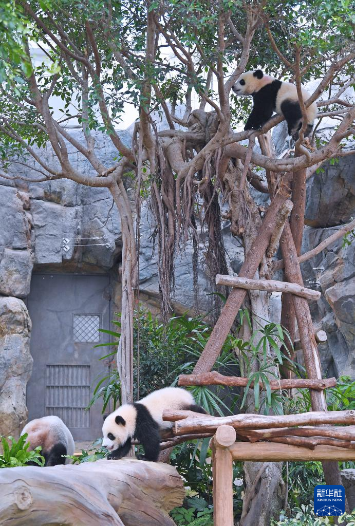 当日,香港海洋公园举办发布会,公布首对“港产”龙凤胎大熊猫正式命名为“加加”“得得”。