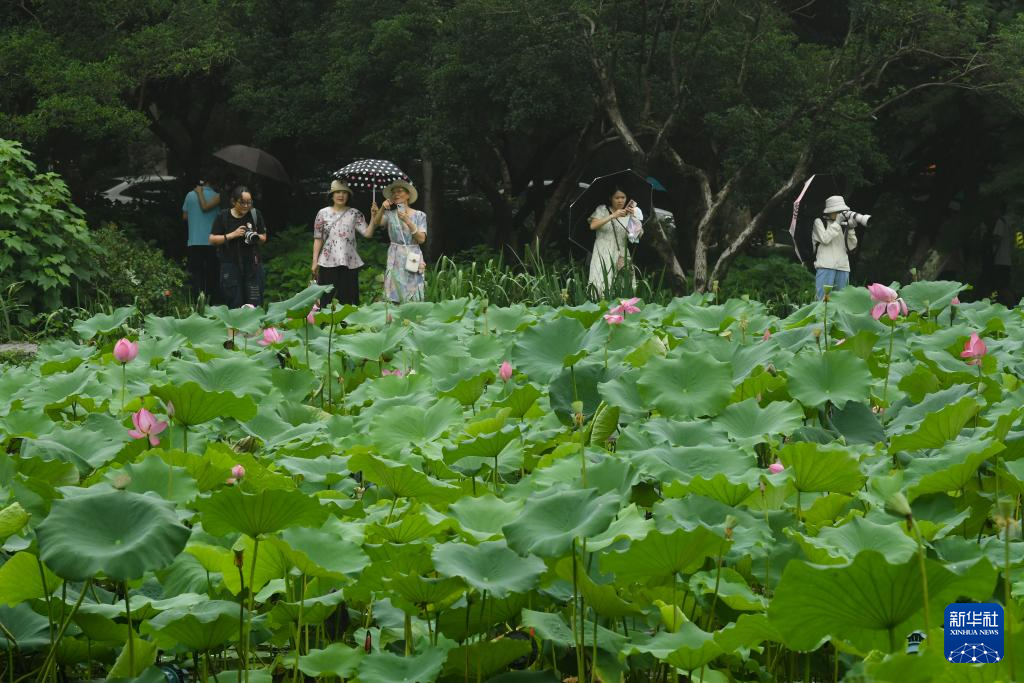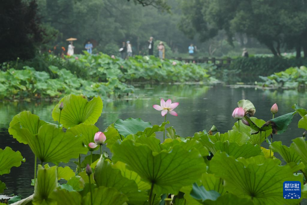 6月24日,人们在曲院风荷景区赏荷。