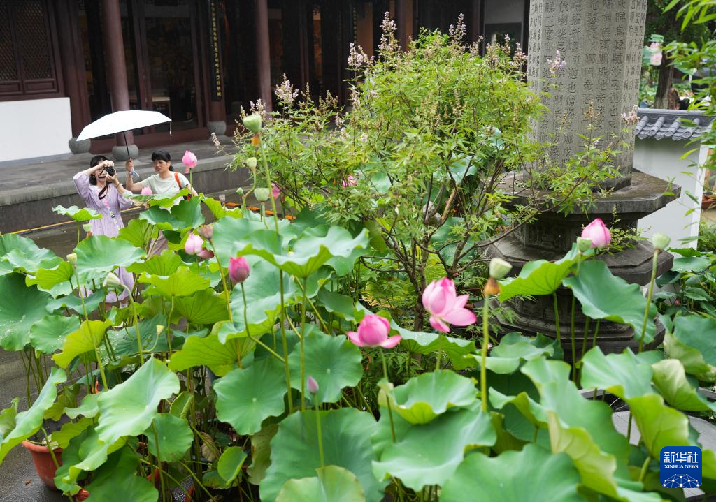 6月24日,人们在钱王祠景区参观西湖莲荷展。
