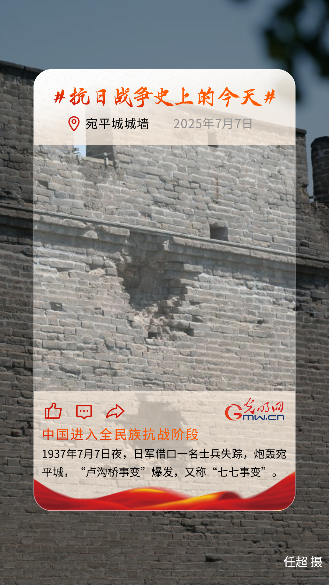 “七七事变”是日本法西斯有计划有预谋扩大侵华战争的借口和导火线,从此,日本帝国主义开始了对中国全面的侵略战争,中国由此进入全民族抗战阶段,并开辟了世界反法西斯战争的东方主战场。中华儿女浴血奋战、救亡图存,谱写了勠力同心、以弱胜强的雄浑史诗。