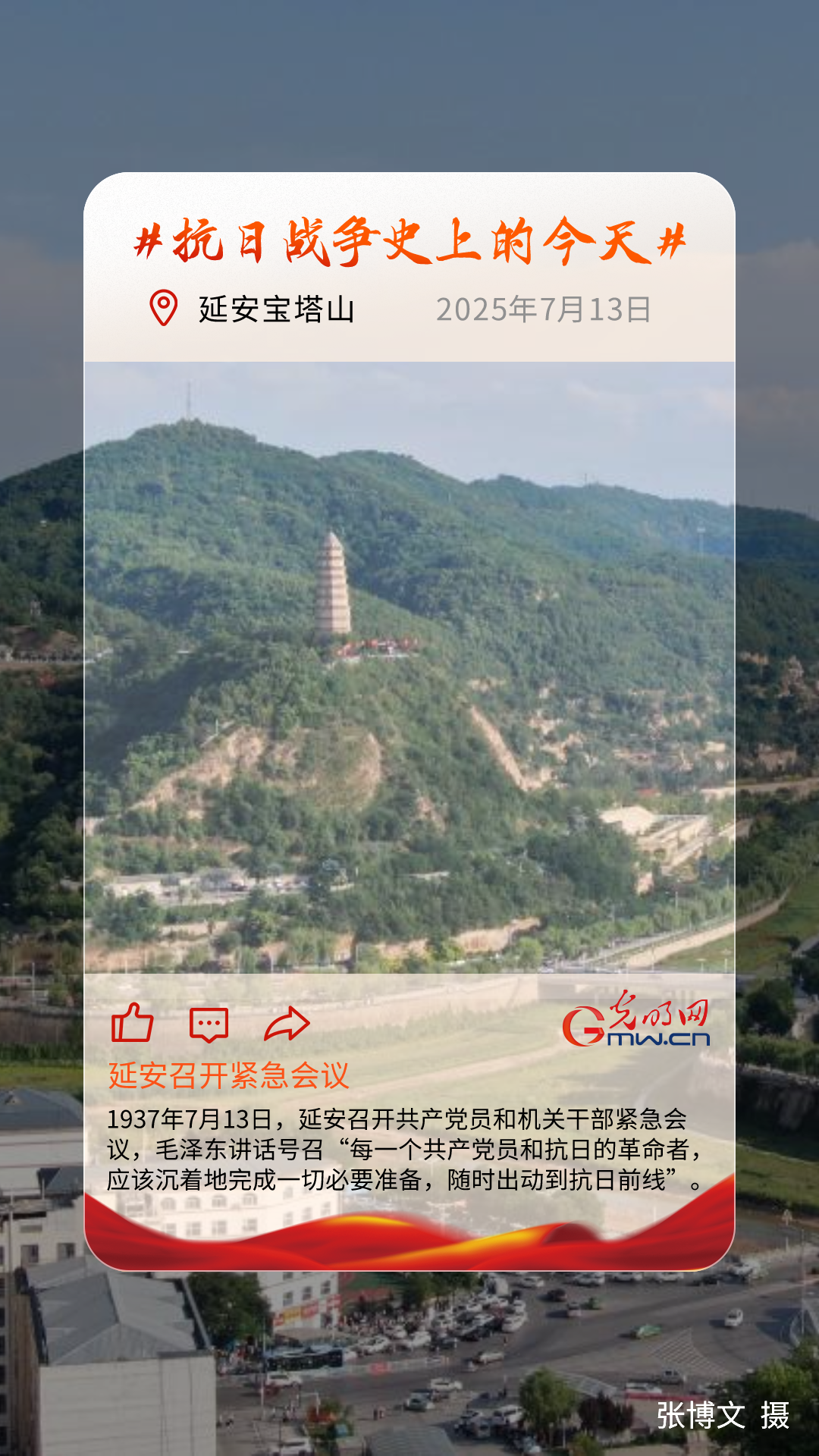 卢沟桥事变爆发后,在中华民族生死存亡的关头,只有全民族团结抗战才是生存和发展的唯一出路。中国共产党是民族解放战争和抗日民族统一战线的积极倡导者和组织者。1937年7月13日,延安召开共产党员和机关干部紧急会议,愤怒声讨日本帝国主义的野蛮侵略。毛泽东到会向各界群众发表演讲,要求“每一个共产党员和抗日的革命者,应该沉着地完成一切必要准备,随时出动到抗日前线。”7月14日,中共中央军委命令红军做好开赴前线的准备。