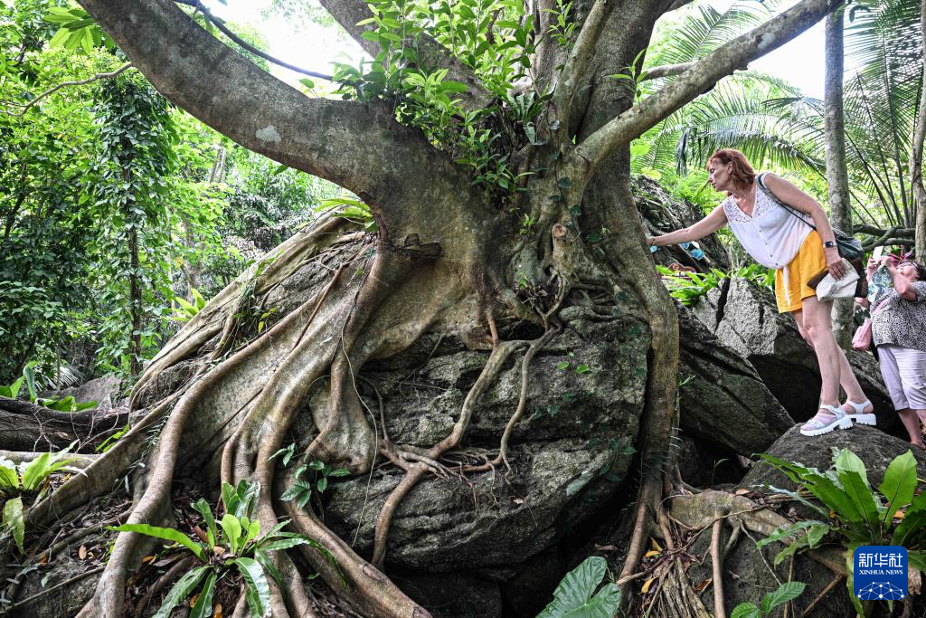 外国游客在海南保亭呀诺达雨林文化旅游区游玩(5月20日摄)。呀诺达雨林文化旅游区是保亭打造“国家全域旅游示范区”的重要载体。