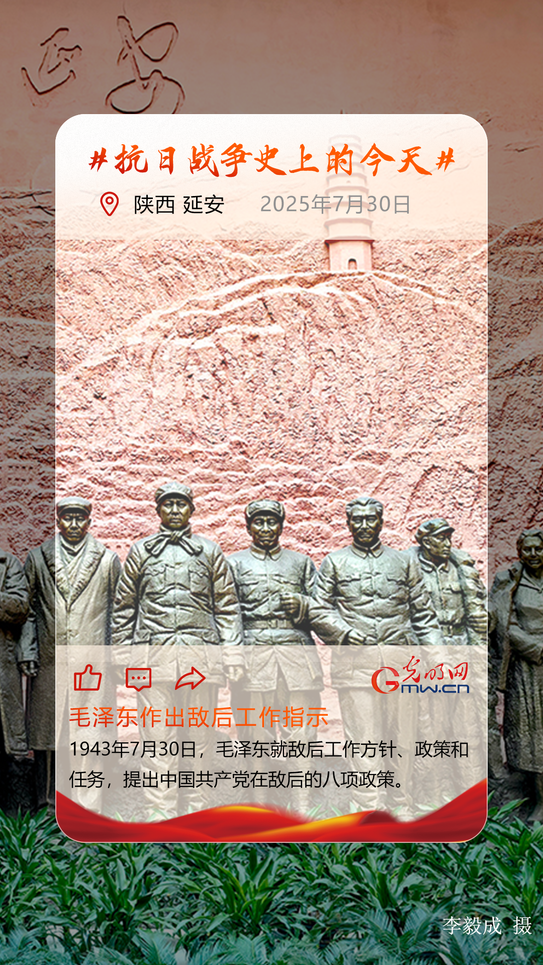1943年7月30日,毛泽东就敌后工作方针、政策和任务,提出中国共产党在敌后的八项政策。