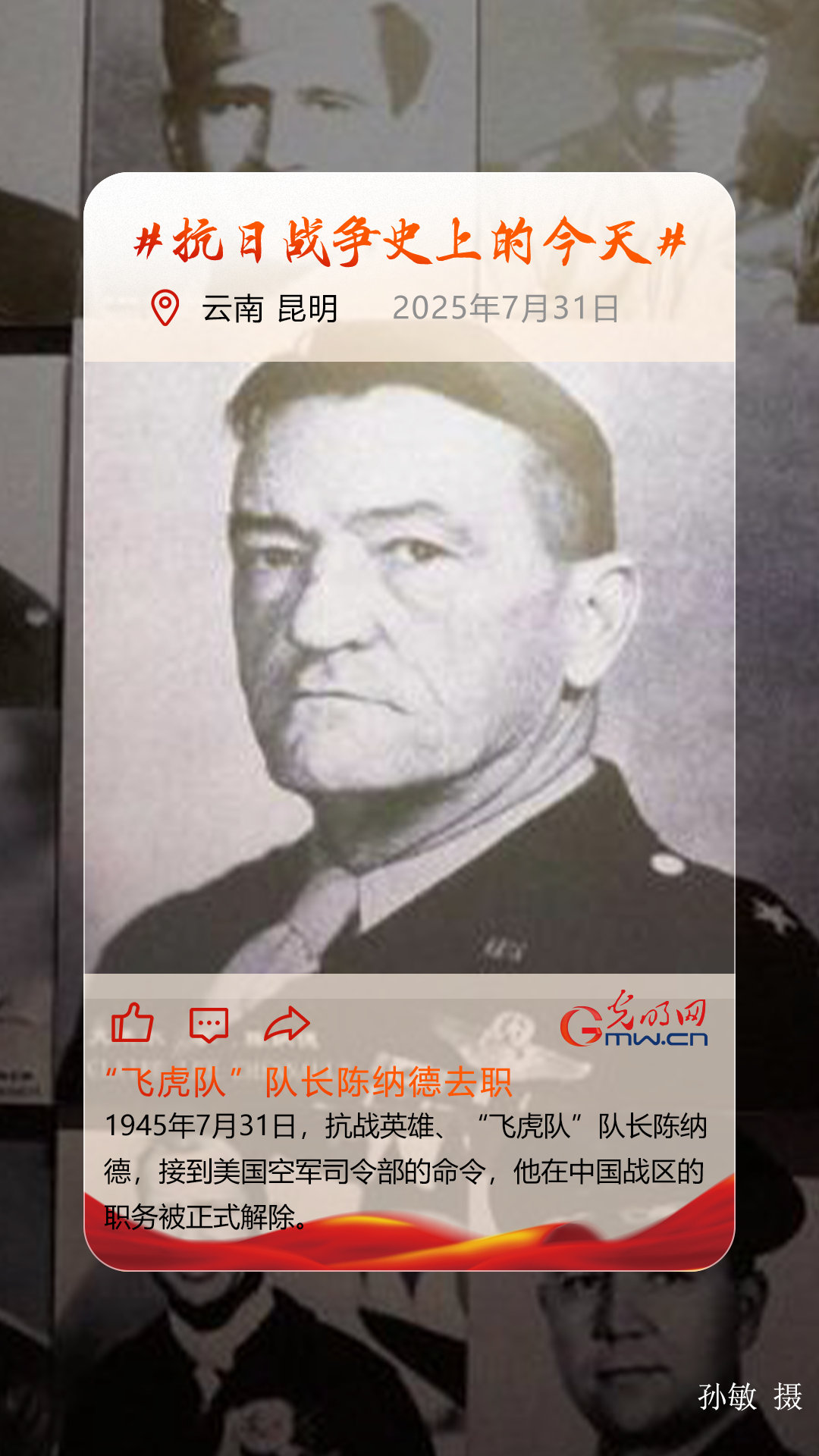 1945年7月31日,抗战英雄、“飞虎队”队长陈纳德,接到美国空军司令部的命令,他在中国战区的职务被正式解除。