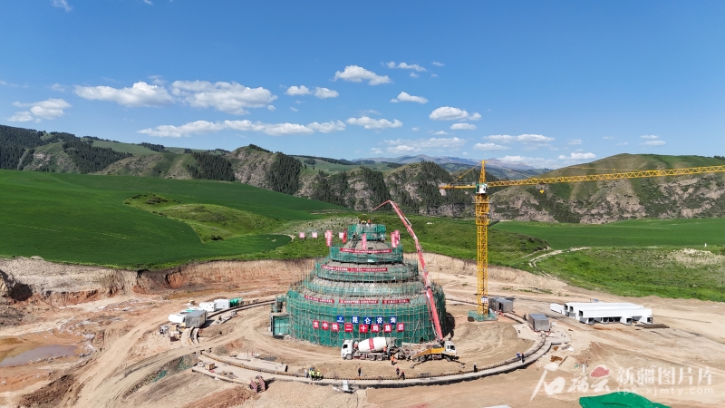 8月1日,在奇台县半截沟镇石河子村,国家重大科研基础设施、110米口径的奇台射电望远镜(QTT)建设正酣。这座重达6000吨的钢铁巨构,已完成直径76米的环形轨道高精度装调,滚轮及中心体结构单元正在拼装,座架结构安装加速推进。