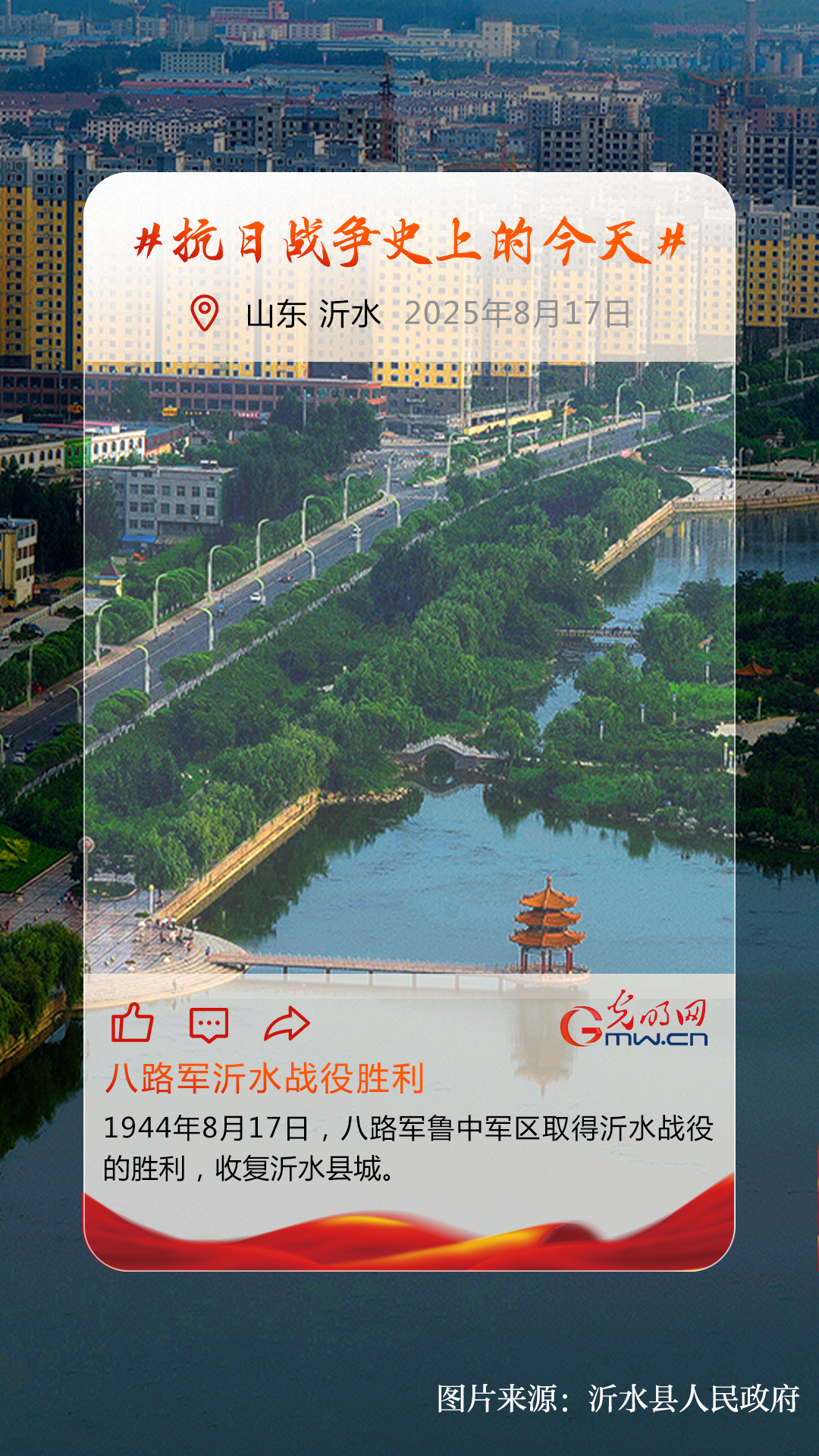 1944年8月17日,八路军鲁中军区取得沂水战役的胜利,收复沂水县城。