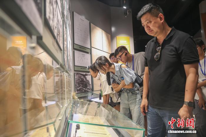 8月19日,江西德安县,两岸青年在万家岭大捷纪念园内观看资料介绍片。中新社记者 刘力鑫 摄
