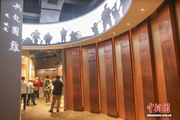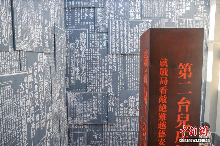 8月19日,江西德安县,万家岭大捷纪念园的一面墙上展示有“万家岭大捷”发生后,当时各大报纸的相关新闻报道。中新社记者 刘力鑫摄
