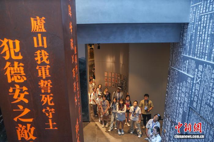 8月19日,江西德安县,两岸青年在参观万家岭大捷纪念园。中新社记者 刘力鑫 摄