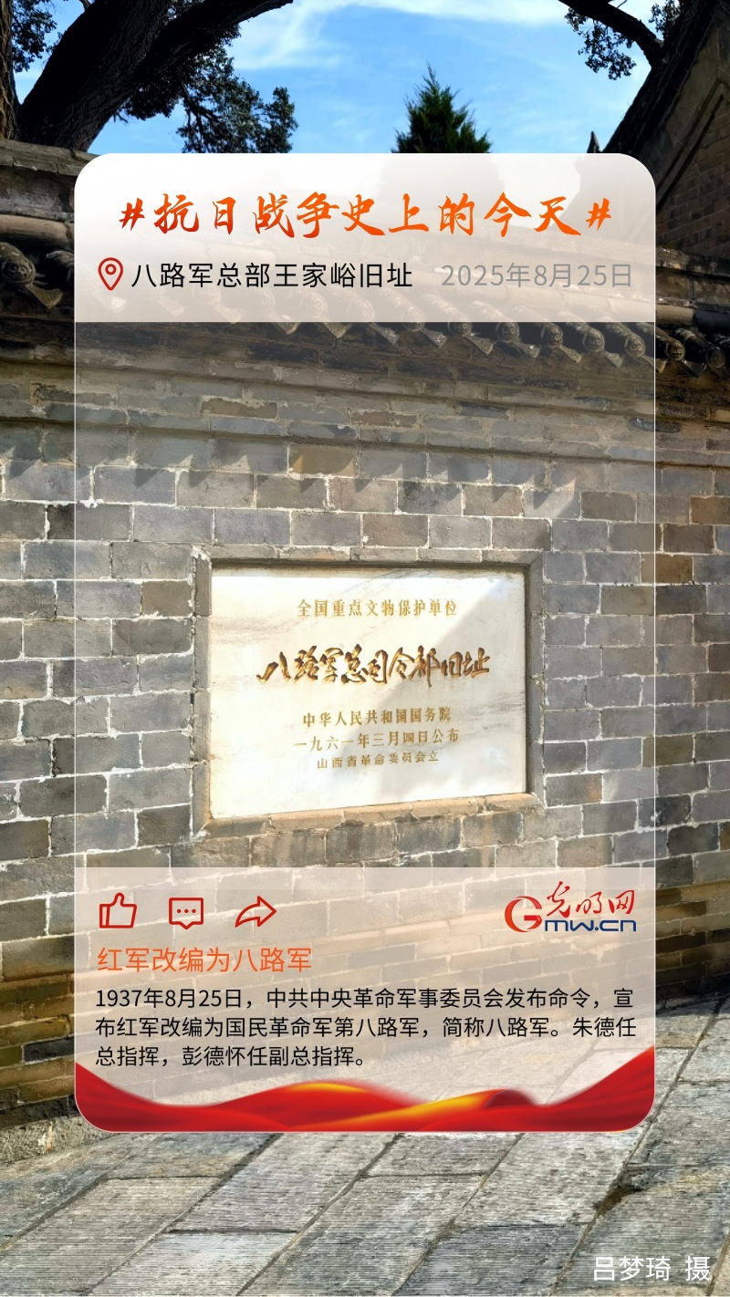 8月25日,中共中央军委发布命令,将中国工农红军第一、第二、第四方面军及陕北红军等部改编为国民革命军第八路军,红军前敌总指挥部改为八路军总指挥部,朱德任总指挥,彭德怀任副总指挥,叶剑英任参谋长,左权任副参谋长;红军总政治部改为八路军政治部,任弼时任主任,邓小平任副主任。全军约4.6万人,下辖三个师:第一一五师以原红军第一方面军为主编成,师长林彪,副师长聂荣臻,政训处主任罗荣桓,下辖第三四三旅(旅长陈光)、第三四四旅(旅长徐海东);第一二○师以原红军第二方面军为主编成,师长贺龙,副师长萧克,政训处主任关向应,下辖第三五八旅(旅长张宗逊)、第三五九旅(旅长陈伯钧);第一二九师以原红军第四方面军为主编成,师长刘伯承,副师长徐向前,政训处主任张浩,下辖第三八五旅(旅长王宏坤)、第三八六旅(旅长陈赓)。