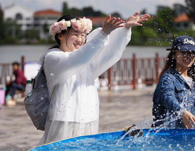 9月3日,纪念中国人民抗日战争暨世界反法西斯战争胜利80周年大会在北京隆重举行。这是来自香港的抗战老兵林珍(前)。