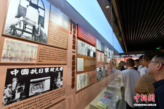 9月3日,“伟大的胜利——福建省纪念中国人民抗日战争暨世界反法西斯战争胜利80周年大型主题展”在福建省革命历史纪念馆正式开展。320余幅照片、近290件文物,全景式展现了在中国共产党领导下福建抗战的烽火岁月、可歌可泣的感人故事,充分体现了在民族危难之际,八闽儿女、闽籍华侨同仇敌忾、共赴国难,闽台同胞并肩战斗,在抗日战争中作出了重大贡献。图为参观者在展馆内参观。中新社记者张斌 摄