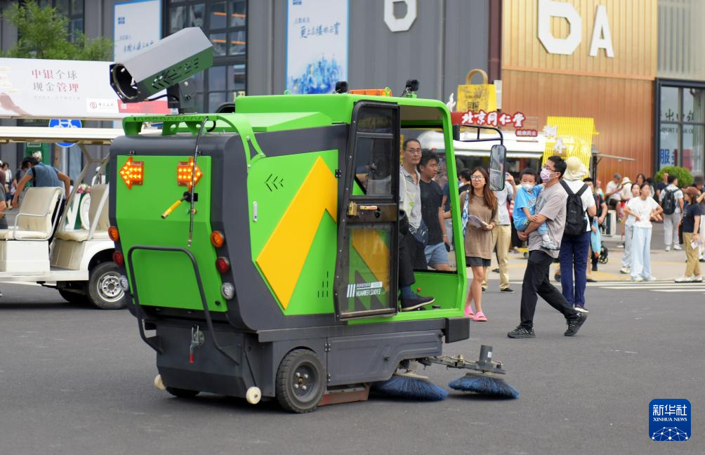 9月13日,保洁人员驾驶车辆清扫服贸会园区路面。