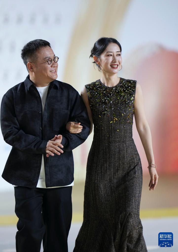 9月13日,导演宁浩(左)、演员刘敏涛走在第二届金熊猫盛典的“金熊猫大道”上。
