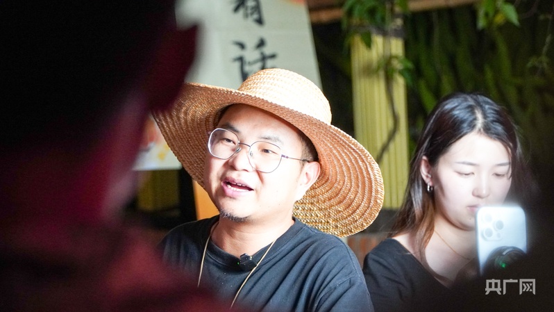 知名“三农”主播曲靖老村长正在老街直播(央广网记者 魏文青摄)
