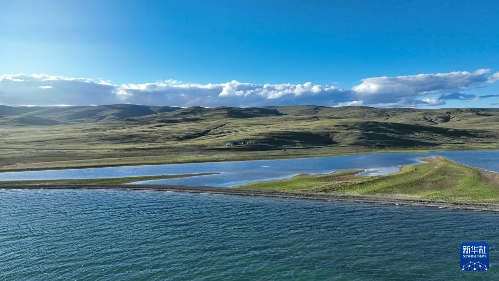 7月25日拍摄的“尕日塘秦刻石”所在地青海省果洛藏族自治州玛多县扎陵湖北岸(无人机照片)。