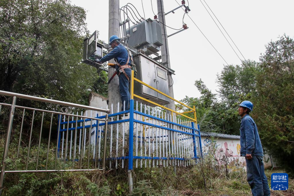 9月28日,在定西市漳县木林小学安置点,电力人员对供电设施进行检查。