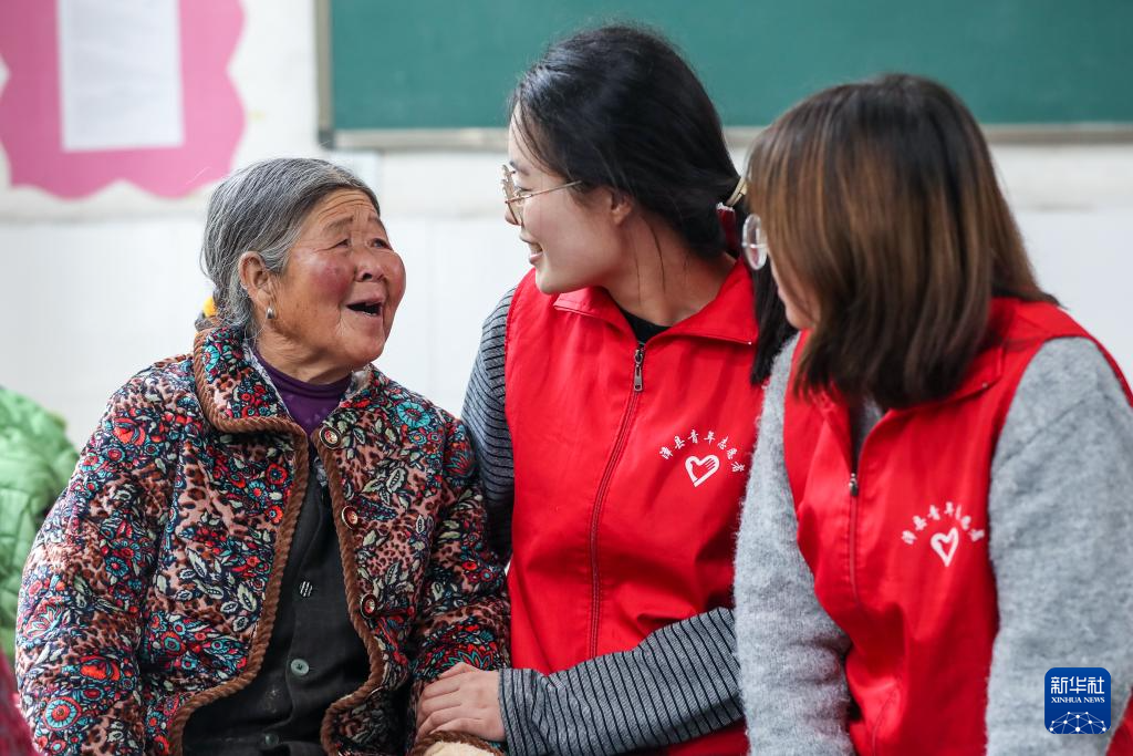 9月28日,在定西市漳县木林小学安置点宿舍内,志愿者与受灾群众交流。