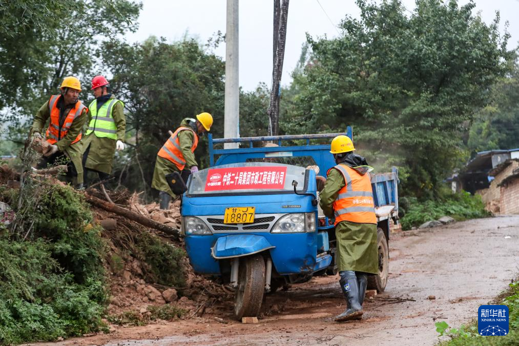 9月28日,在定西市漳县武阳镇汪家河村卢家屲社,中铁二十局集团市政工程有限公司抢险人员在进行清堵排险作业。