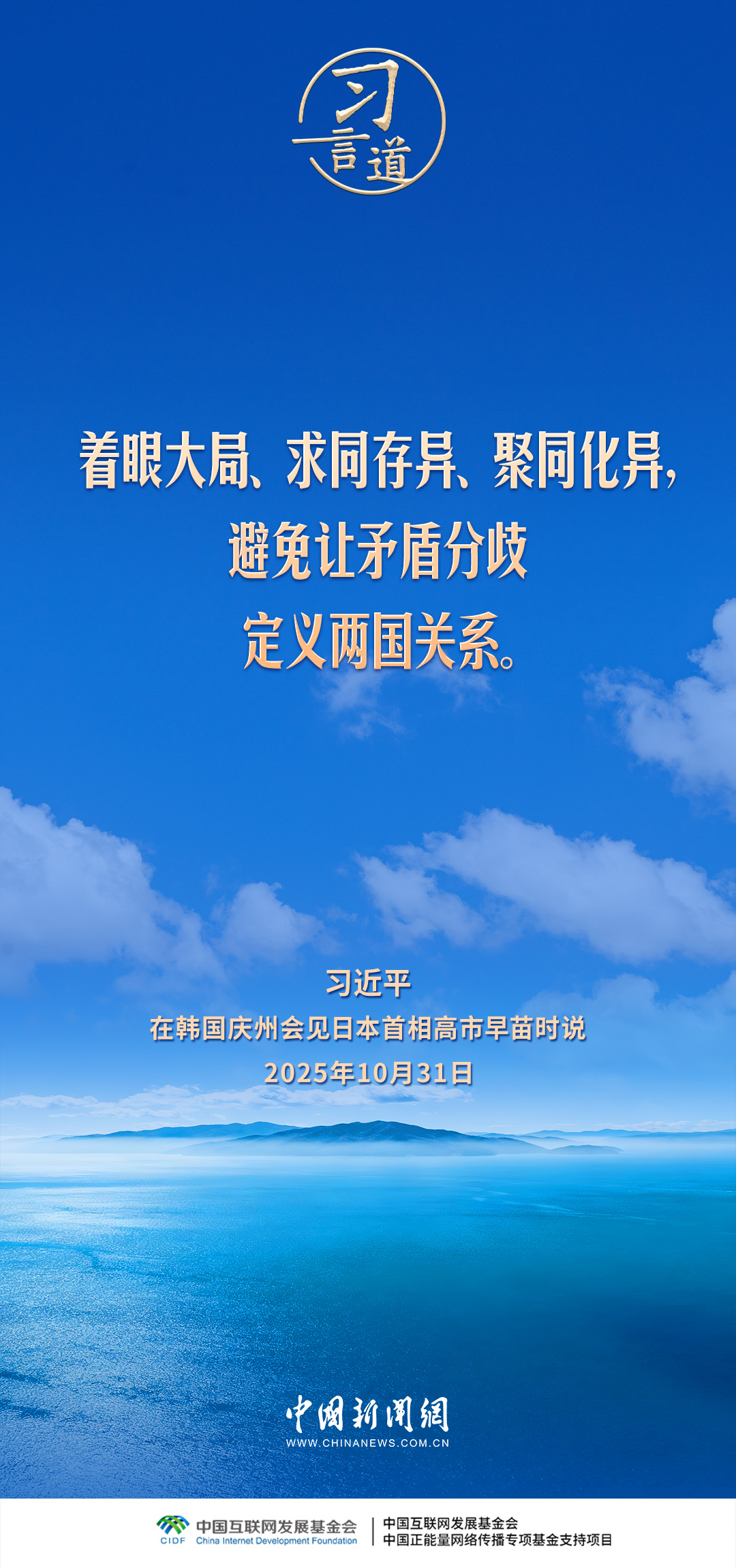 当地时间10月31日,国家主席习近平在韩国庆州出席亚太经合组织第三十二次领导人非正式会议期间应约会见日本首相高市早苗。习近平指出——