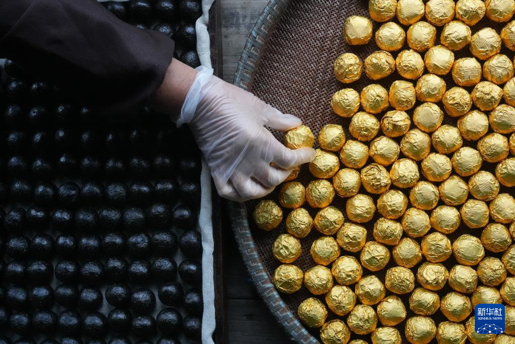 11月4日,太平山村村民在村里的黄精共富工坊制作黄精芝麻丸。