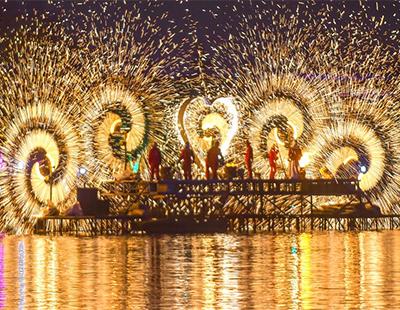11月5日,在第八届进博会国家展中国馆,一名伊朗参展商和机器人握手。