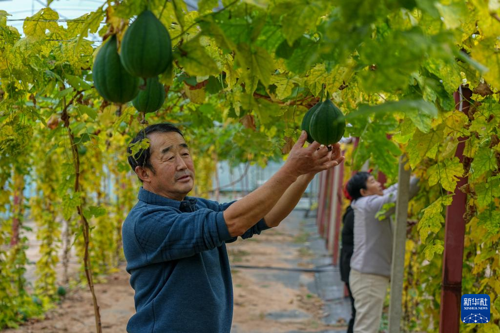 11月7日,双泉庄村村民在收获中药材栝楼。