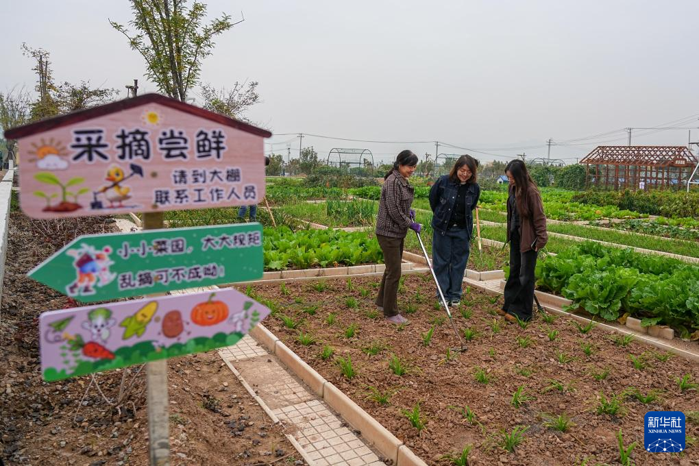 11月7日,游人在双泉庄村民宿片区共享菜园内体验蔬菜种植。