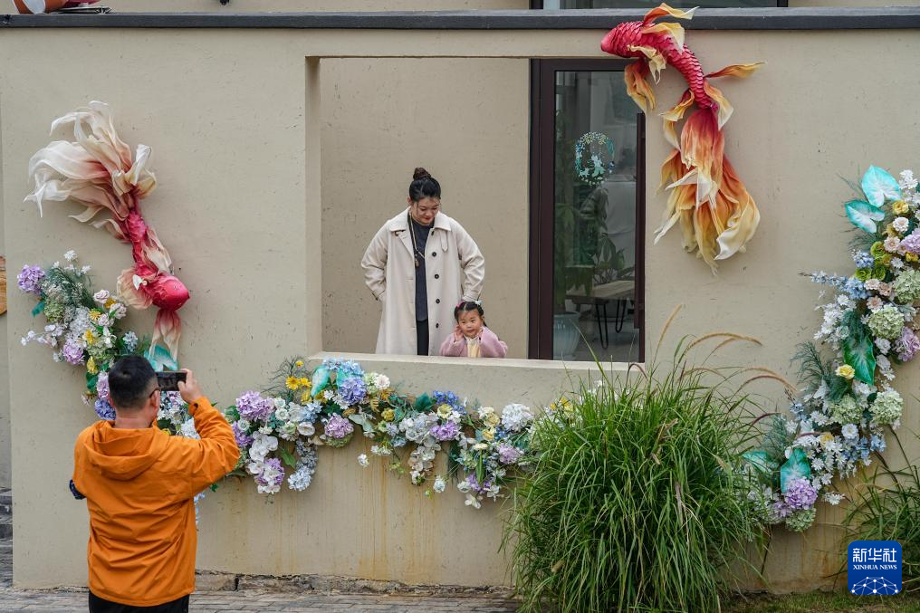 11月7日,游人在双泉庄村民宿片区打卡拍照。