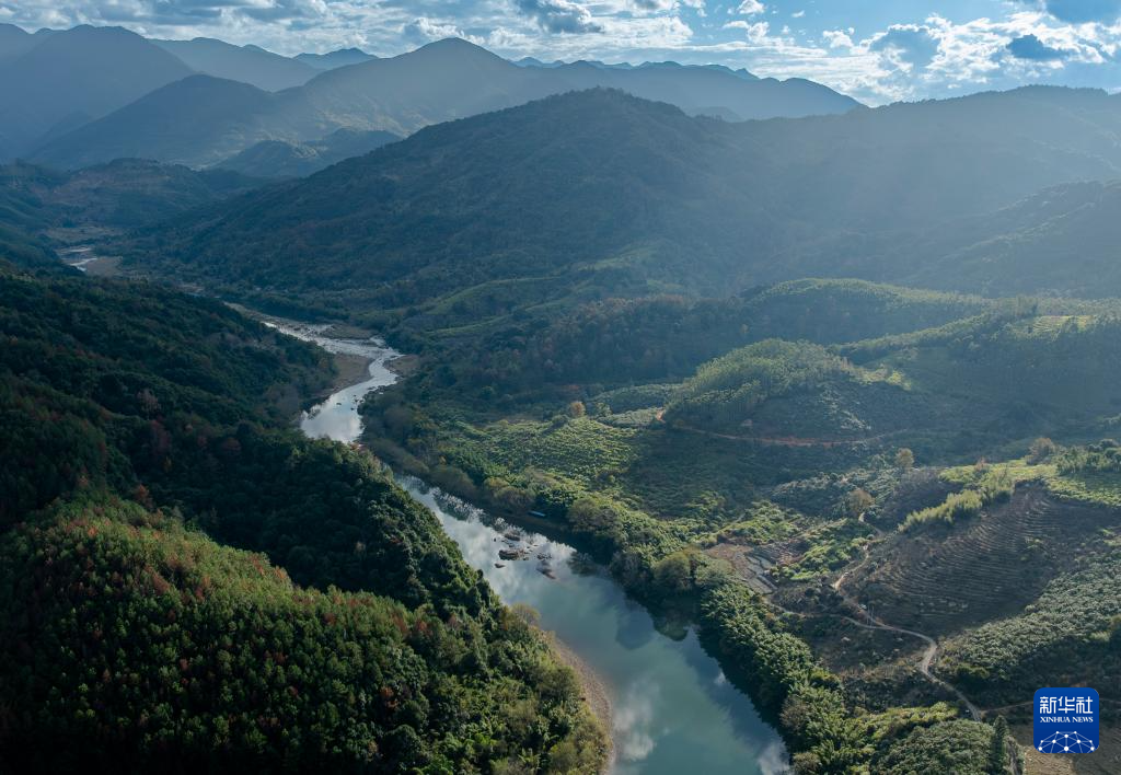 这是12月20日拍摄的福建省永泰县嵩口镇梧埕村大樟溪(无人机照片)。