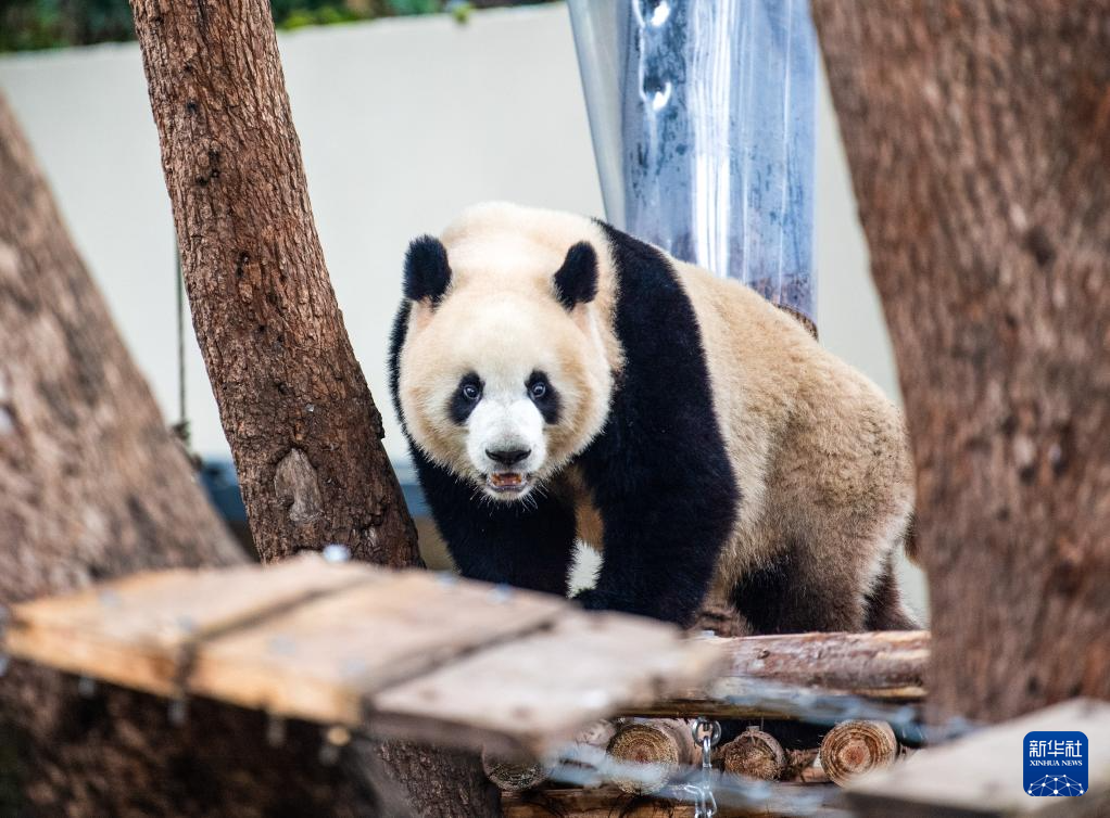 12月22日,入住的大熊猫在适应新环境。
