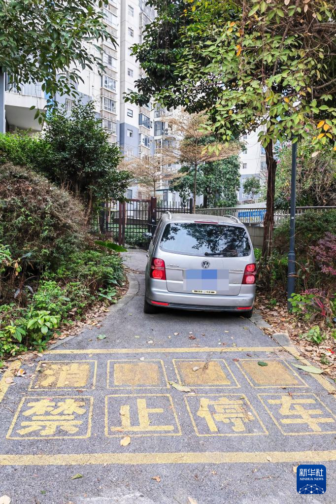 在广西某市一小区内,汽车违规停放占用消防通道(12月3日摄)。