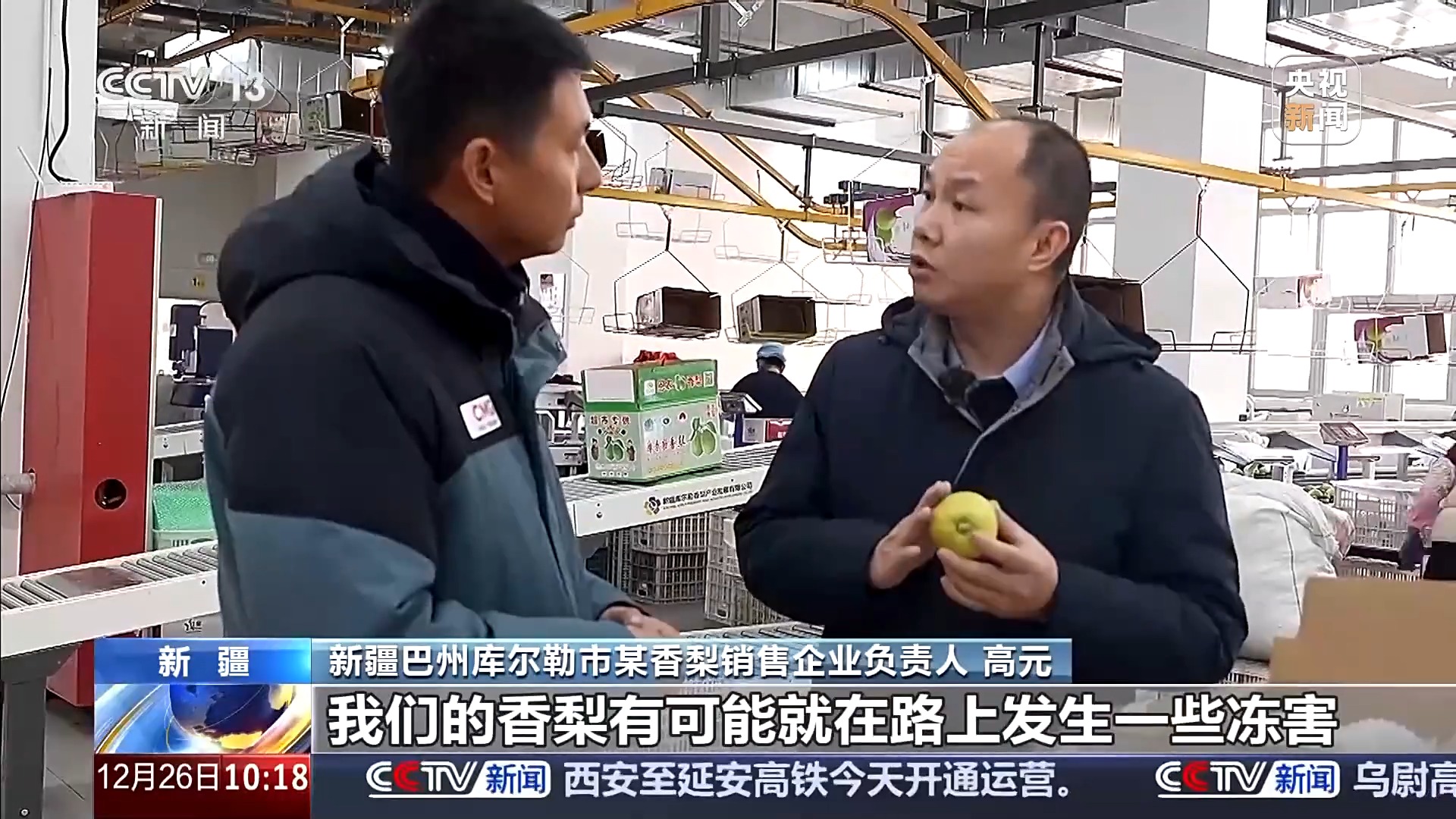 新疆巴州库尔勒市某香梨销售企业负责人高元:乌尉高速开通前,特别是冬天,在路上要运输7个小时,香梨有可能就在路上发生一些冻害,现在时间缩短到三个半小时,我们就可以更高效地把香梨销售到乌鲁木齐。