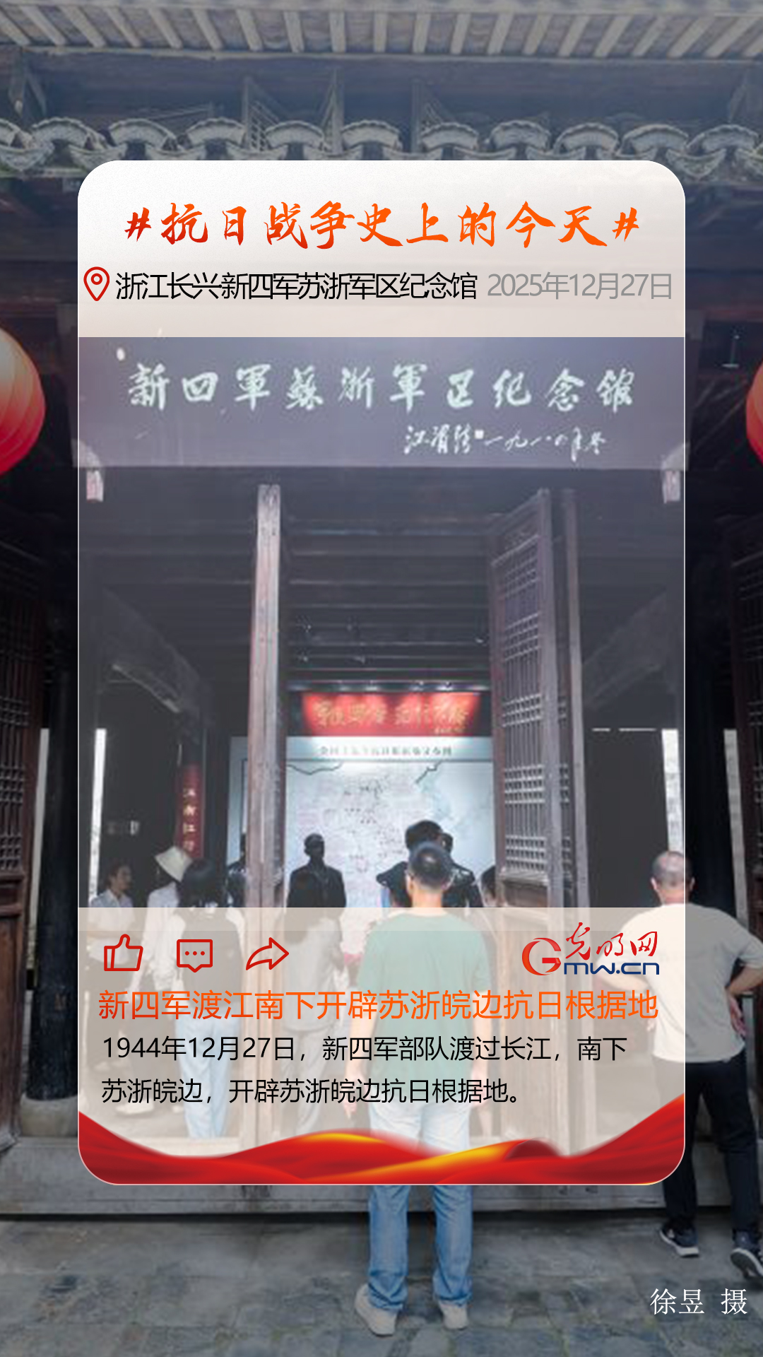 1944年12月27日,新四军部队渡过长江,南下苏浙皖边,开辟苏浙皖边抗日根据地。