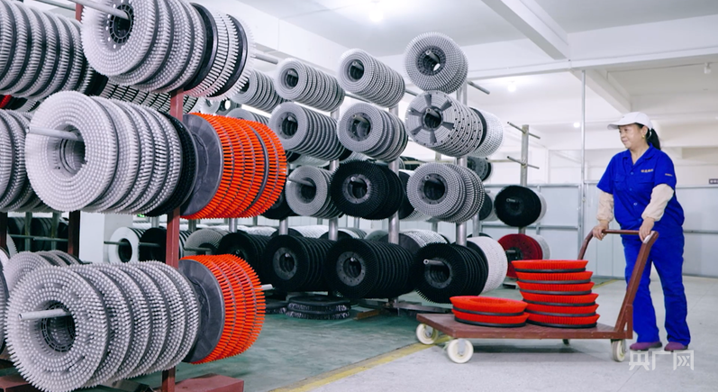 源潭镇制刷工人正在对产品进行规整收纳(央广网记者 刘畅司晨摄)
