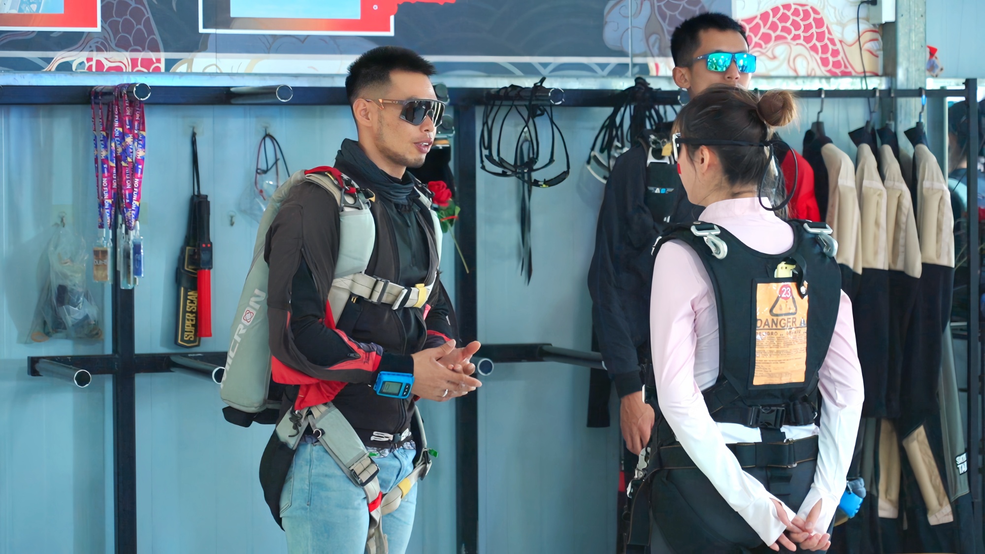 跳伞基地工作人员向游客讲解安全知识(央广网记者 索迪摄)