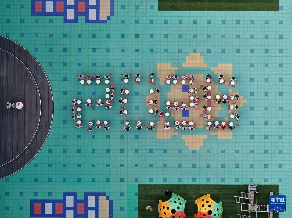 12月31日,江苏淮安生态文旅区沁春路小学学生在迎新年(无人机照片)。