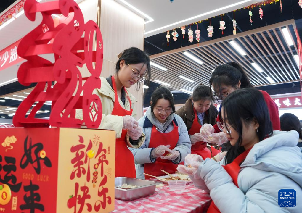 12月31日,在湖南省衡阳市,南华大学公共卫生学院的研究生们在学校学生食堂包饺子迎新年。