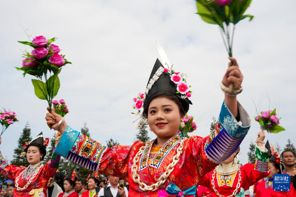 12月30日,在广西柳州市融水苗族自治县大年乡林浪村,苗家女跳芦笙舞。