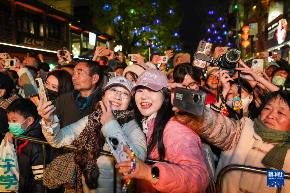 12月31日,人们在江苏省南京市秦淮区门东历史文化街区参加迎新年巡游活动。