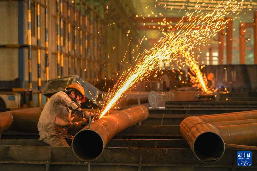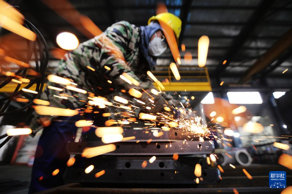 12月31日,在四川眉山天府新区中建钢构四川有限公司车间,工人赶制钢结构产品。
