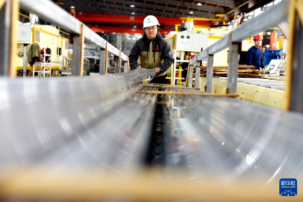 12月31日,工人在山东省滨州市惠民经济开发区的一家铝业公司车间生产铝型材订单。